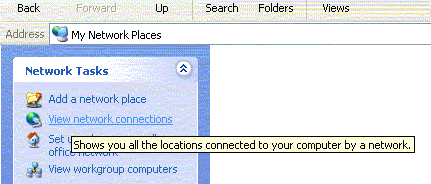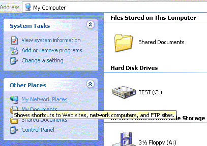 MAKE ANY OF THESE CHANGES, ************************************************************* - Step 1: Dial-up Configurations for CVC Internet - 1.) When the computer is turned on, the Windows XP system will open a main screen named the desktop. On the desktop, double-click on the "My Computer" icon (see example below). 2.) In the left side menu of the "My Computer" window, single-click on "My Network Places" (see example screen below). 3.) In the left side menu of the "My Network Places" window, single-click on "View Network Connection" (see example below). 4.) In the left side menu of the "Network Connections" window, single-click on "Create New Connection" (see example below). 5.) In the "Welcome to the New Connection Wizard"
